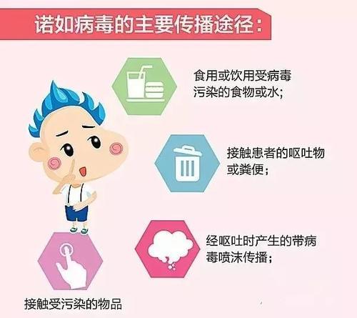 感染者粪便和呕吐物中可以发现诺如病毒,可以通过几种方式感染诺如病毒:食用诺如病毒污染的食物或饮用诺如病毒污染的饮料;接触诺如病毒污染的物体或表面,然后手接触到口;直接接触到感染者(如照顾病人,与病人同餐或使用相同的餐具)。